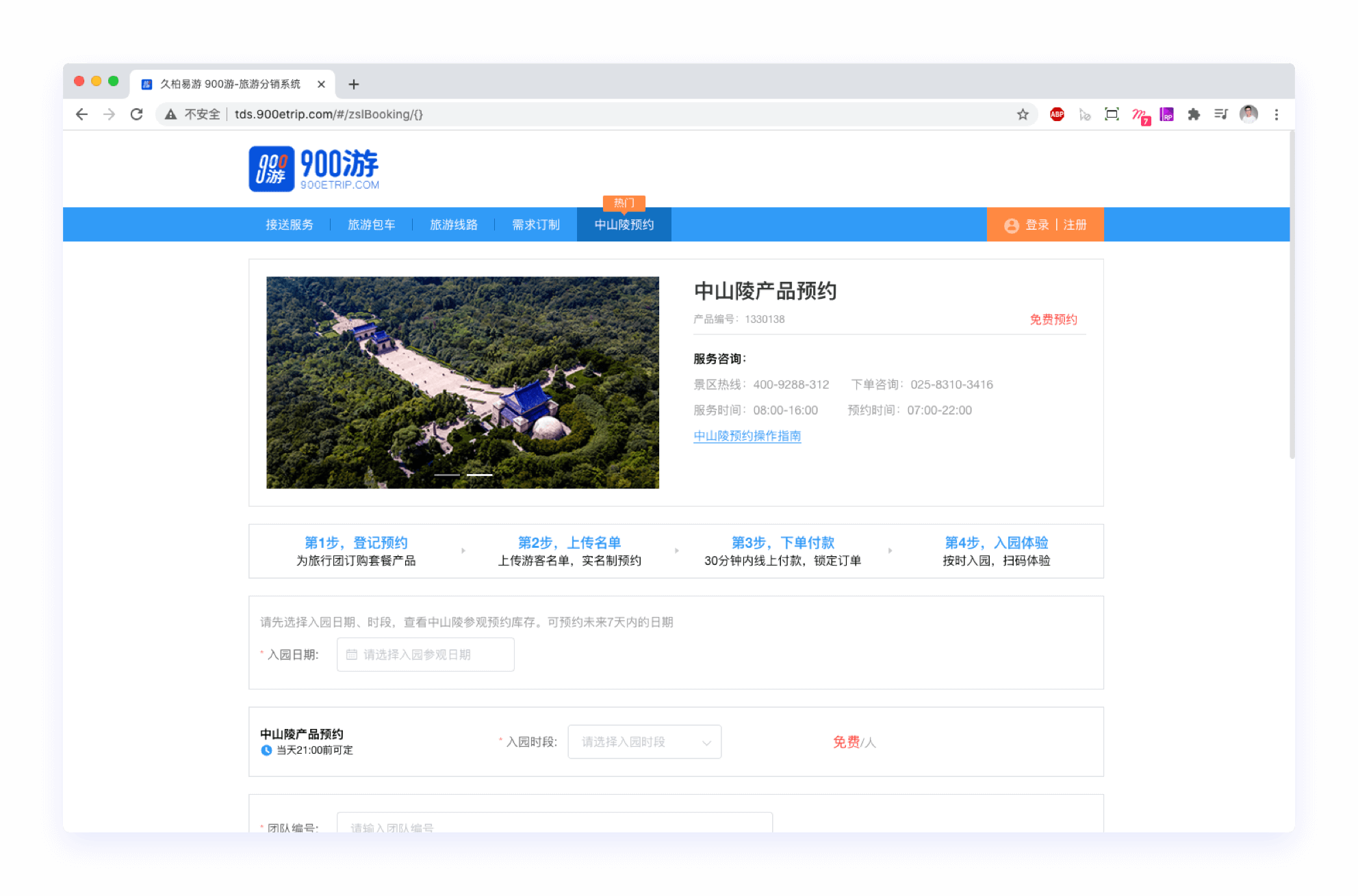 从技术搭建到运营维护,900游做到一站式放心服务。基于“团队特性”,实现景区“瞬时流量”的削峰填谷。通过900游景区管理系统+门票预订平台+导游带团小程序+景区服务小程序,形成完整生态闭环,并持续为景区提供精准游客大数据,助力景区运营。